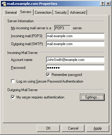 and password not only when you receive mail, but also when you send it. Ask your provider which